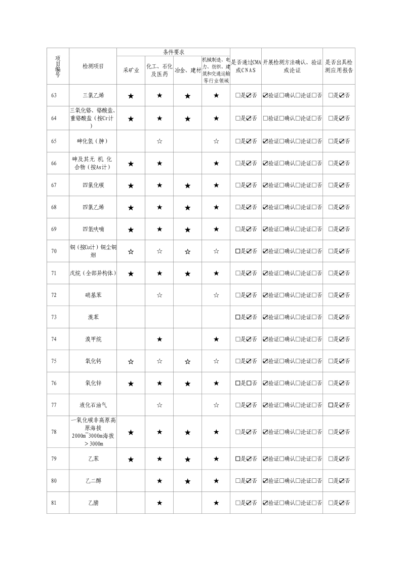 經技術評審審核認定的檢測項目(第一類業務 合計110項)