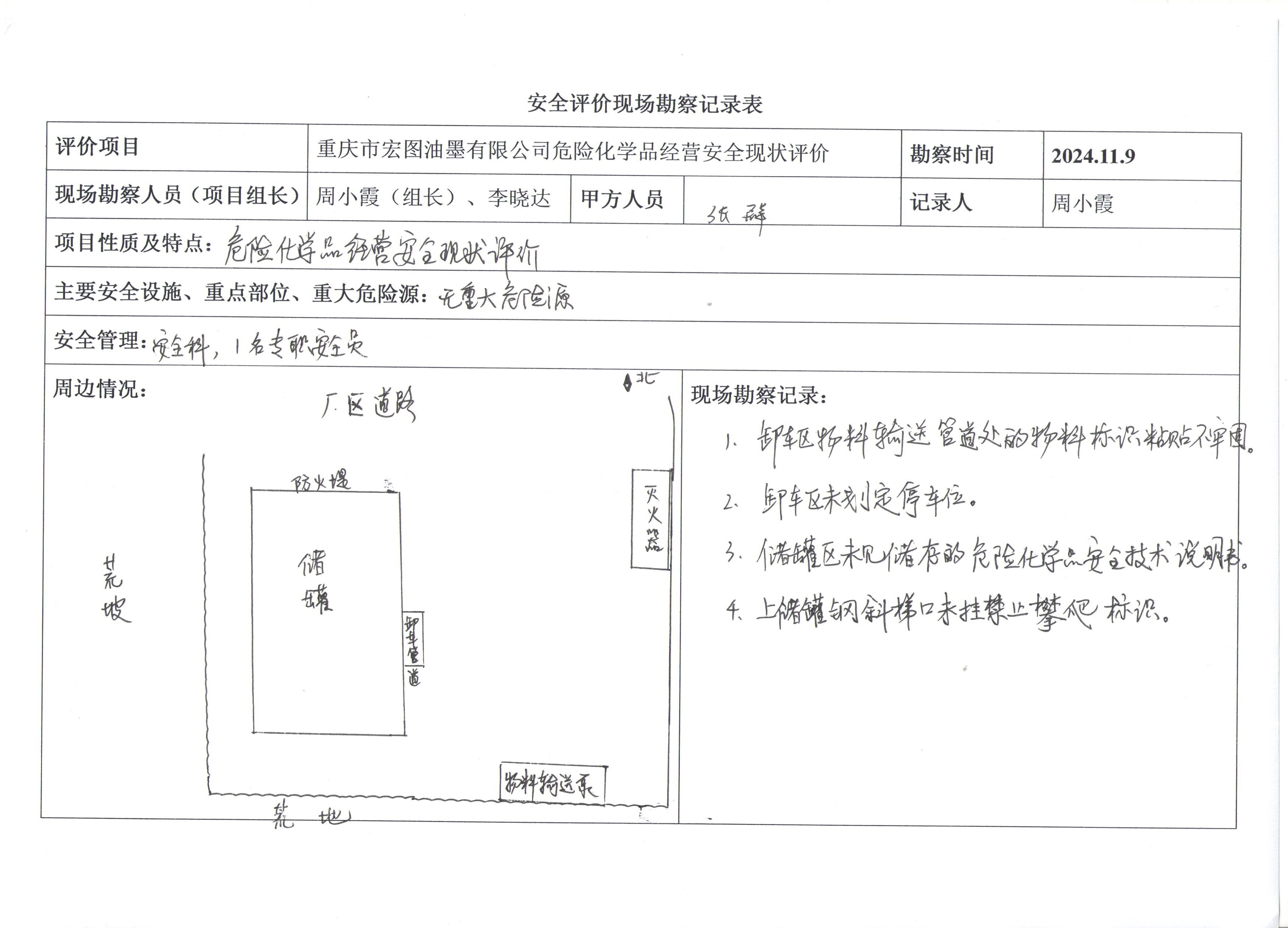 項(xiàng)目名稱 | 重慶市宏圖油墨有限公司危險(xiǎn)化學(xué)品經(jīng)營安全現(xiàn)狀評價(jià)報(bào)告 | 合同編號(hào) | DA(渝)-PJ-20241104 | |||||