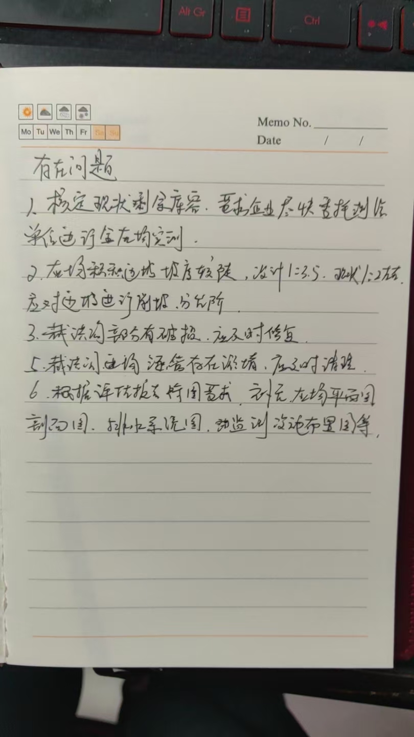1、因擴容擴建工程尚未完成,目前貯灰場部分區域超過一期設計貯灰標高,根據西北有色勘測工程有限責任公司2025年4月出具的《云南紅河能投發電有限公司灰場現狀穩定性評估報告》結論,貯灰場壩體處于穩定狀態,且灰場下游的居民搬遷工作已基本完成,當前風險處于可控狀態,根據《國家能源局關于印發〈燃煤發電廠貯灰場安全監督管理規定〉的通知》 國能發安全規〔2022〕53號第二十一條的規定,公司應加快擴容擴建工程的推進,在1年內按照正常貯灰場標準完成整治工作; 2、貯灰場的警示標志多處缺失,建議在貯灰場排洪豎井設置警示標志; 3、南側截洪溝有局部破損、淤泥堵現象,應及時清理和修復; 4、進灰場道路有揚塵現象,建議采取降塵措施; 5、沉降及位移觀測點處未編號,建議進行編號。