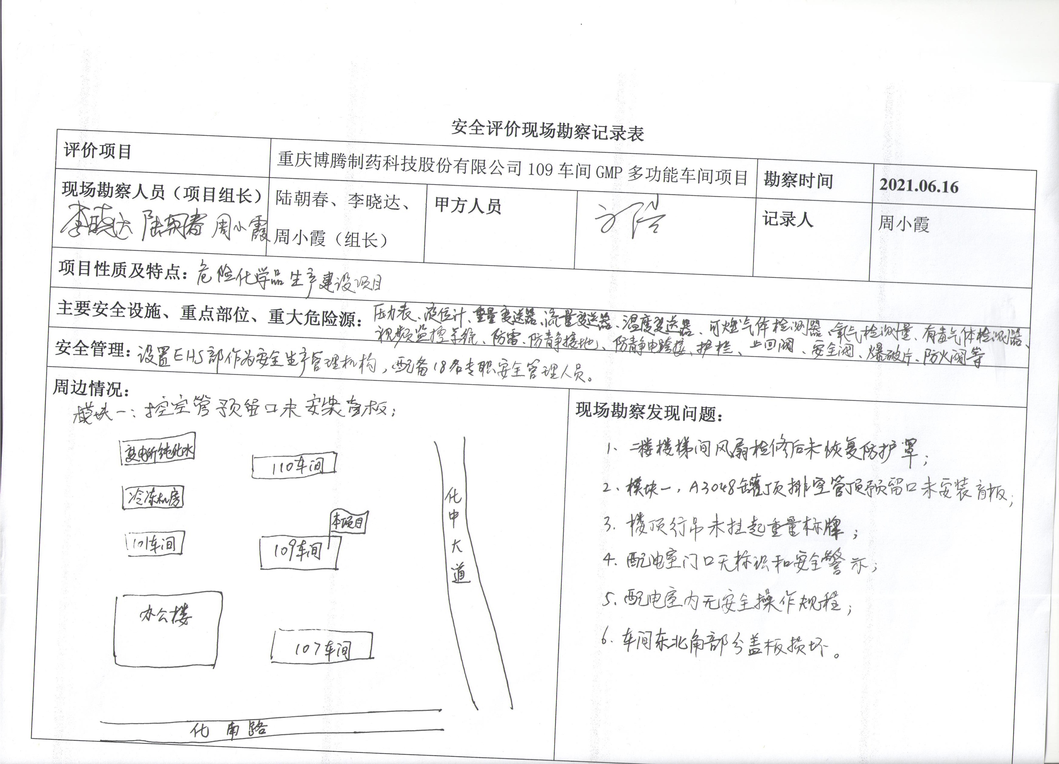 項(xiàng)目名稱 | 重慶博騰制藥科技股份有限公司109車(chē)間GMP多功能車(chē)間項(xiàng)目安全驗(yàn)收評(píng)價(jià) | 合同編號(hào) | DA(渝)PJ-003 | |||||