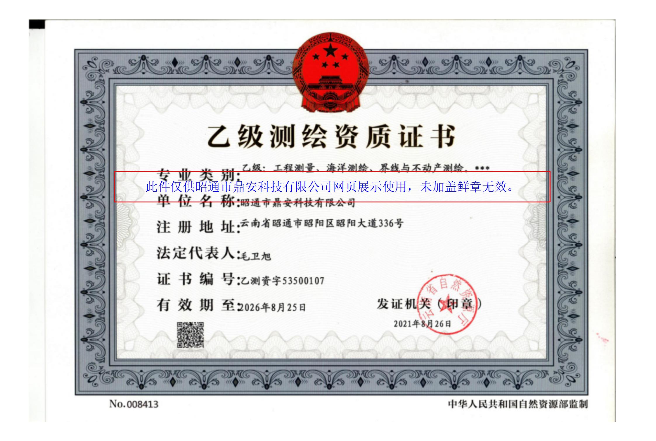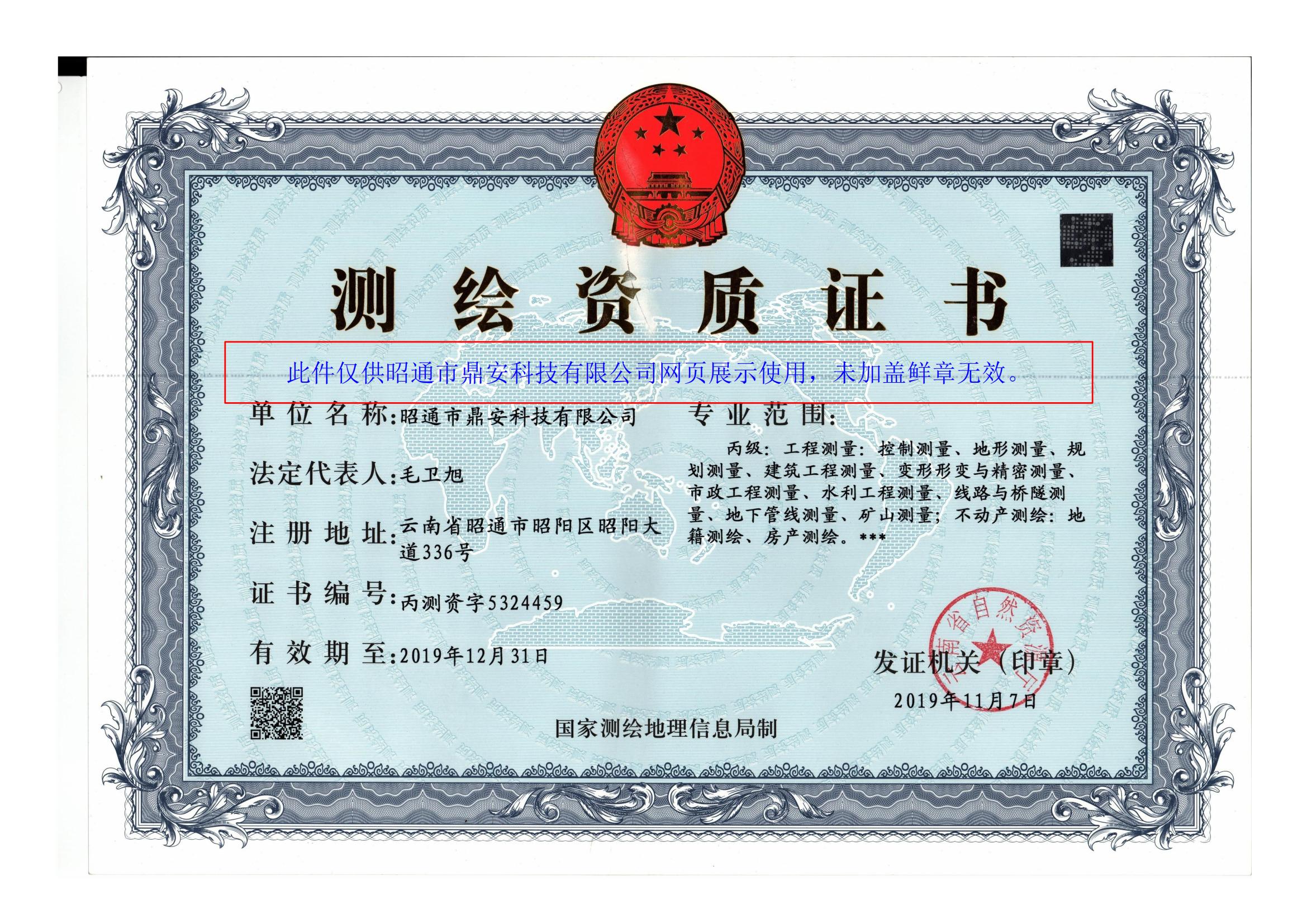 昭通市鼎安科技有限公司測繪資質(zhì)